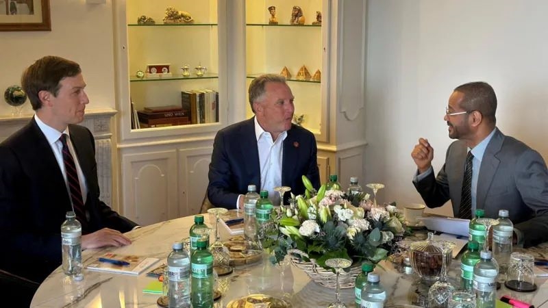 Ngoại trưởng Oman Badr Albusaidi (bên phải) trong một cuộc gặp với Đặc phái viên Steve Witkoff và con rể Tổng thống Mỹ Jared Kushner. Ảnh: Reuters