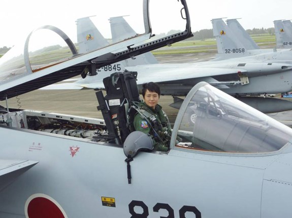 Thượng úy Misa Matsushima trong buồng lái tiêm kích F-15J (Ảnh: Kyodo)