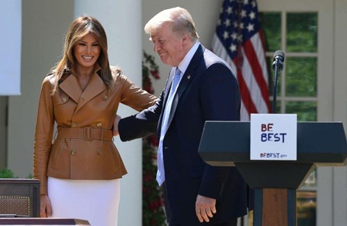 Bà Melania Trump cùng Tổng thống Donald Trump xuất hiện tại buổi Lễ công bố chiến dịch “Be Best”. Ảnh: ABC News.