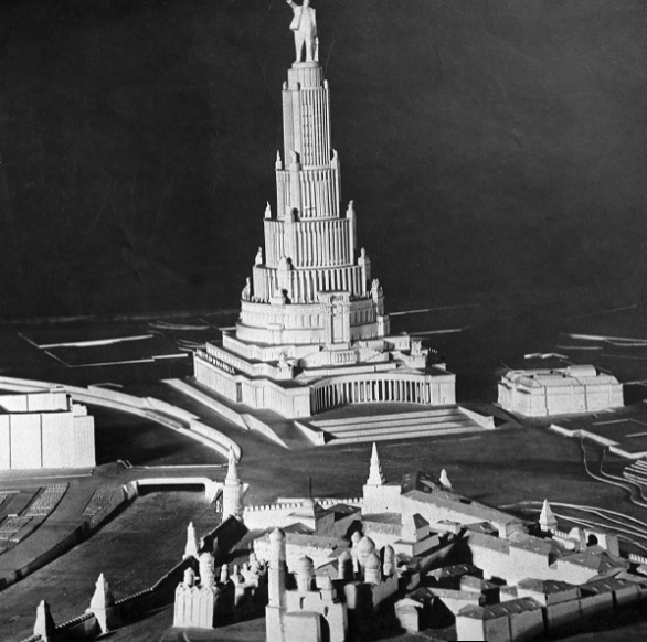 Công trình lẽ ra được xây dựng tại vị trí của nhà thờ Chúa Cứu thế từng bị phá hủy năm 1931 ở thủ đô Moskva. Tại đây, người ta thậm chí đã làm xong phần móng của tòa nhà. Tuy nhiên, Chiến tranh thế giới lần thứ hai nổ ra đã phá hỏng toàn bộ kế hoạch. Sau chiến tranh, việc hồi sinh dự án đã không thể thực hiện. Và để thay thế nó, tại phần móng người ta đã làm một bể bơi ngoài trời lớn nhất Liên Xô. Trong những năm 1990, bể bơi này bị dừng hoạt động và người ta cho xây lại nhà thờ Chúa Cứu thế trên nền đất này.