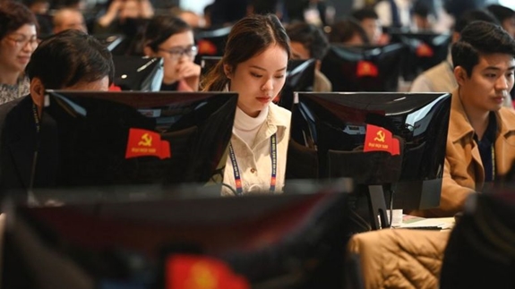 Phóng viên tác nghiệp tại Đại hội lần thứ XIII của Đảng Cộng sản Việt Nam. Ảnh: BBC.