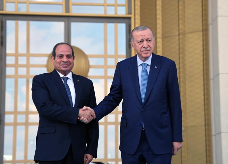 Tổng thống Thổ Nhĩ Kỳ Recep Tayyip Erdoğan (bên phải) và người đồng cấp Ai Cập Abdel-Fattah al-Sisi trong cuộc gặp tại Ankara, tháng 9-2024. Ảnh: Tân Hoa xã |