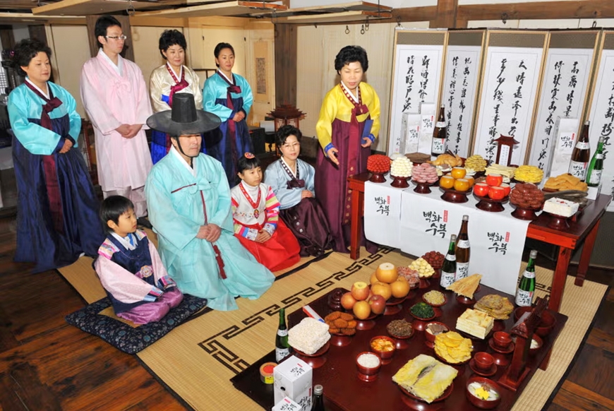 Nghi lễ Charye (Cúng gia tiên): Sáng sớm Mồng 1 Tết, toàn bộ gia đình sẽ tập trung tại nhà trưởng nam để thực hiện nghi lễ Charye.