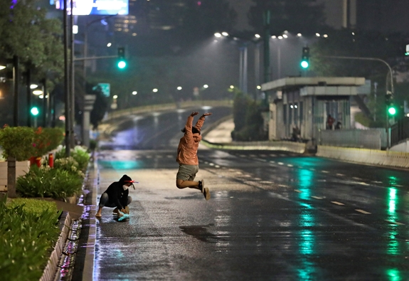 Trái ngược với các quốc gia châu Đại Dương, người dân tại Thủ đô Jakarta, Indonesia đón năm mới 2021 trong tĩnh lặng.