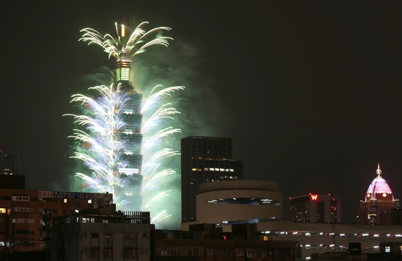 Tòa cao ốc Taipei 101 tỏa sáng trong thời khắc giao thời tại Đài Loan (Trung Quốc).