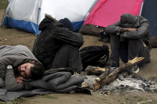 Người nhập cư vạ vật ở vùng biên giới Hi Lạp - Macedonia chờ xin được nhập cư. Ảnh: Reuters