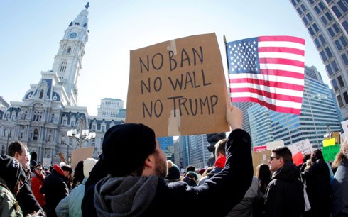 Người biểu tình phản đối lệnh cấm nhập cảnh của Tổng thống Mỹ Donald Trump. Ảnh: Reuters.