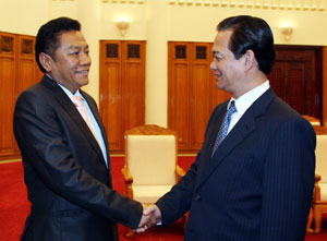 Thủ tướng Nguyễn Tấn Dũng tiếp Bộ trưởng Bộ Công thương và Du lịch Cộng hòa Dân chủ Đông Ti-mo.