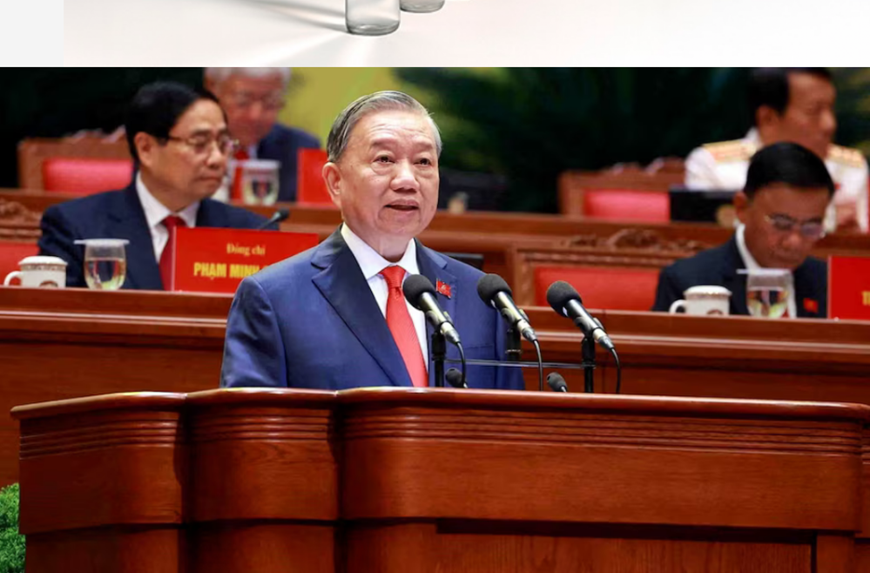 | Tổng Bí thư Tô Lâm cùng các đại biểu đến dự phiên họp trù bị Đại hội đại biểu toàn quốc lần thứ XIV của Đảng Cộng sản Việt Nam, ngày 19-1. Ảnh: Reuters |