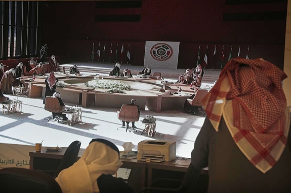 | Các nhà báo theo dõi Hội nghị thượng đỉnh GCC lần thứ 41 diễn ra tại Al-Ul, Saudi Arabia qua màn hình. Ảnh: AP. |