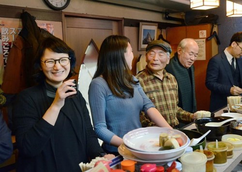Cô Yuri Ito (đầu tiên, bên trái) tại một cơ sở ăn uống “không khói thuốc” ở Osaka, Nhật Bản. Ảnh: Kyodo News. |