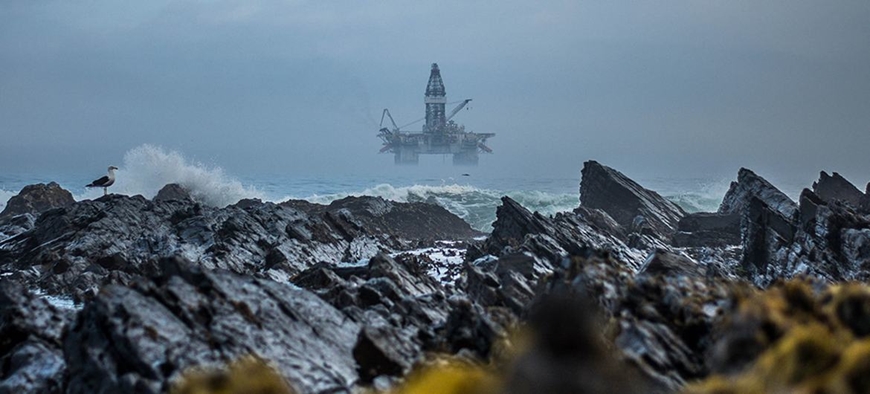 | Một giàn khoan dầu ngoài khơi gần bờ biển Cape Town, Nam Phi. |