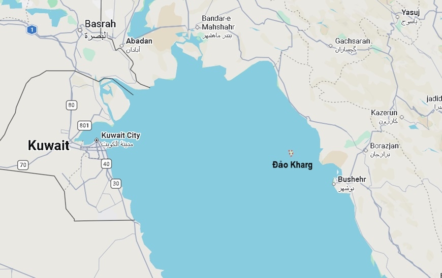 | Bản đồ đảo Kharg. Ảnh: Google Map |
