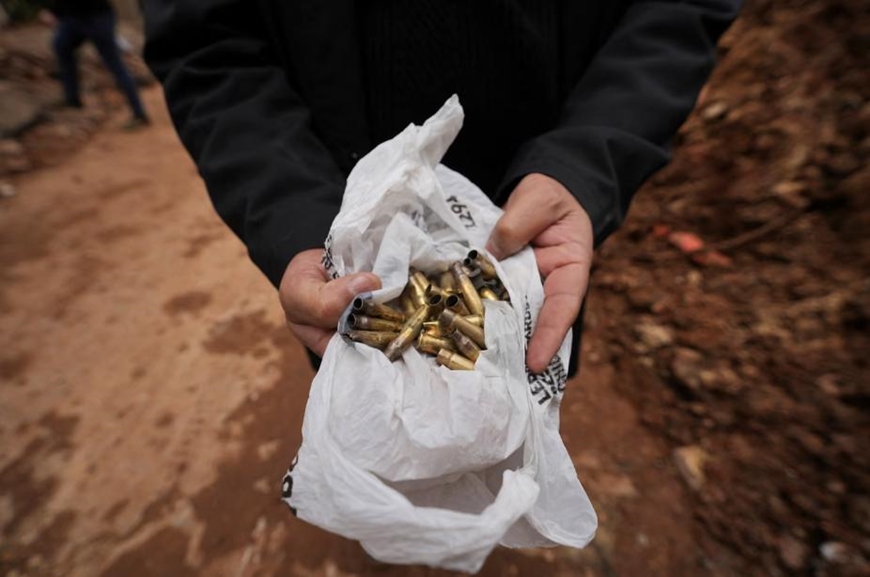 | Vỏ đạn thu được tại hiện trường cuộc tấn công của Israel ở Nabi Chit. Ảnh: Reuters |