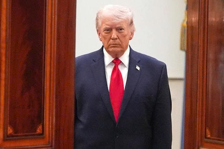 Ông Trump bước ra từ Phòng Xanh để phát biểu về cuộc chiến tại Trung Đông ở Nhà Trắng ngày 1-4. Ảnh: AP