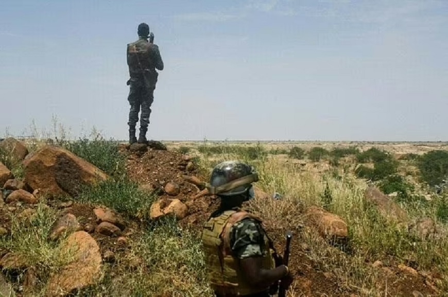 Binh sĩ Nigeria tuần tra khu vực miền Tây giáp ranh Niger-Mali-Burkina Faso, nơi thường xuyên xảy ra các vụ tấn công của nhóm thánh chiến Jihad. Ảnh: Daily Mail |