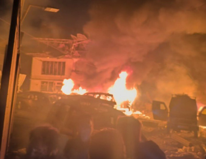 | Những hình ảnh lan truyền trên mạng xã hội cho thấy tòa nhà bị thiêu rụi hoàn toàn và chìm trong biển lửa. Ảnh chụp màn hình X/Ảnh: lefigaro.fr |
