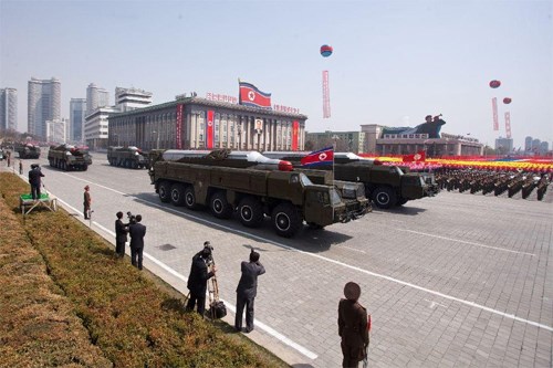 Tên lửa Triều Tiên trong cuộc diễu binh tại Bình Nhưỡng. Ảnh: abcnews.