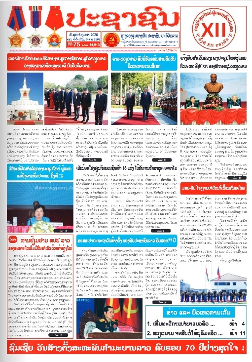 Báo Pasaxon, cơ quan ngôn luận của Trung ương Đảng Nhân dân cách mạng Lào số ra ngày 6-2 đưa tin đậm nét về chuyến thăm cấp Nhà nước của Tổng Bí thư Tô Lâm. Ảnh chụp màn hình bài báo
