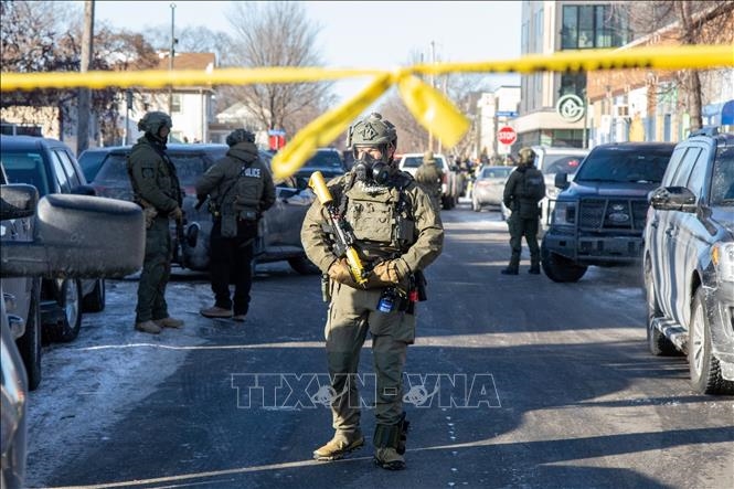 | Cảnh sát được triển khai tại Minneapolis, bang Minnesota, Mỹ, ngày 24-1-2026. Ảnh: TTXVN |