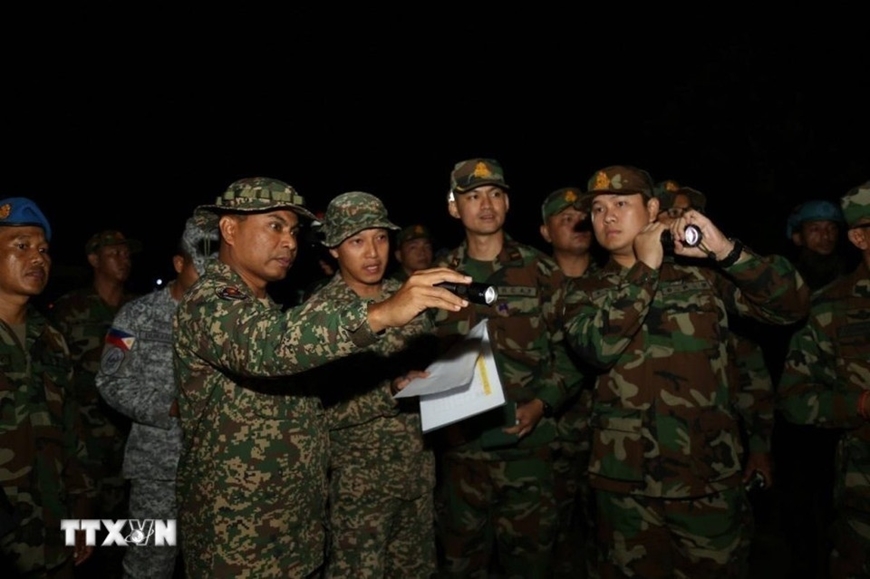 | Các quan sát viên ASEAN giám sát hoạt động rút khí tài quân sự, vũ khí hạng nặng của Quân đội Campuchia khỏi khu vực biên giới tranh chấp. |