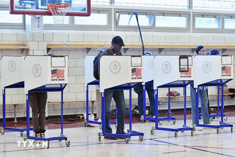 | Cử tri bỏ phiếu tại điểm bầu cử ở Manhattan, New York, Mỹ, ngày 5-11-2024. |