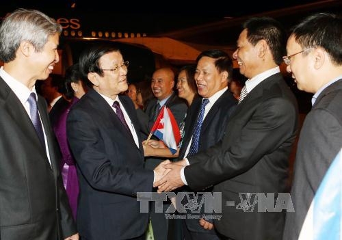 QĐND - Sau khi kết thúc các hoạt động tại Hoa Kỳ, vào lúc 21 giờ 20 phút ngày 28-9 giờ Cu-ba (tức 8 giờ 20 phút ngày 29-9 giờ Việt Nam), Chủ tịch nước Trương Tấn Sang cùng Đoàn đại biểu cấp cao Việt Nam đã đến sân bay quốc tế Hô-xê Mác-ti Ha-ba-na, thủ đô La Ha-ba-na, bắt đầu chuyến thăm chính thức Cộng hòa Cu-ba.