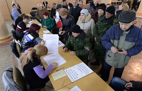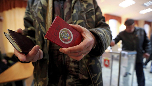 Khi đi bỏ phiếu cử tri chỉ cần mang theo hộ chiếu. Ảnh chụp tại thành phố Sevastopol.