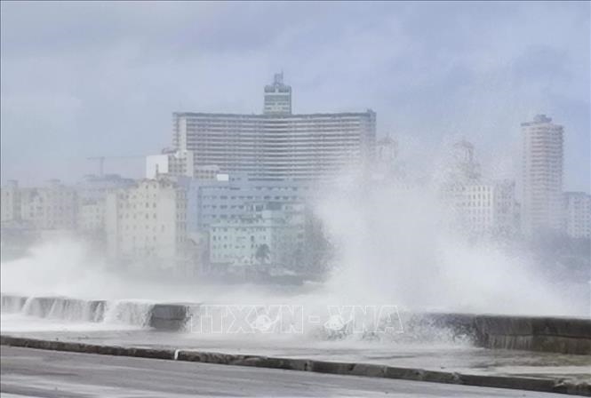 Sóng lớn tràn qua đê biển Malecon bảo vệ thủ đô La Habana, Cuba.