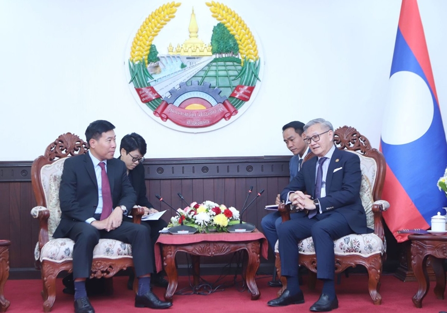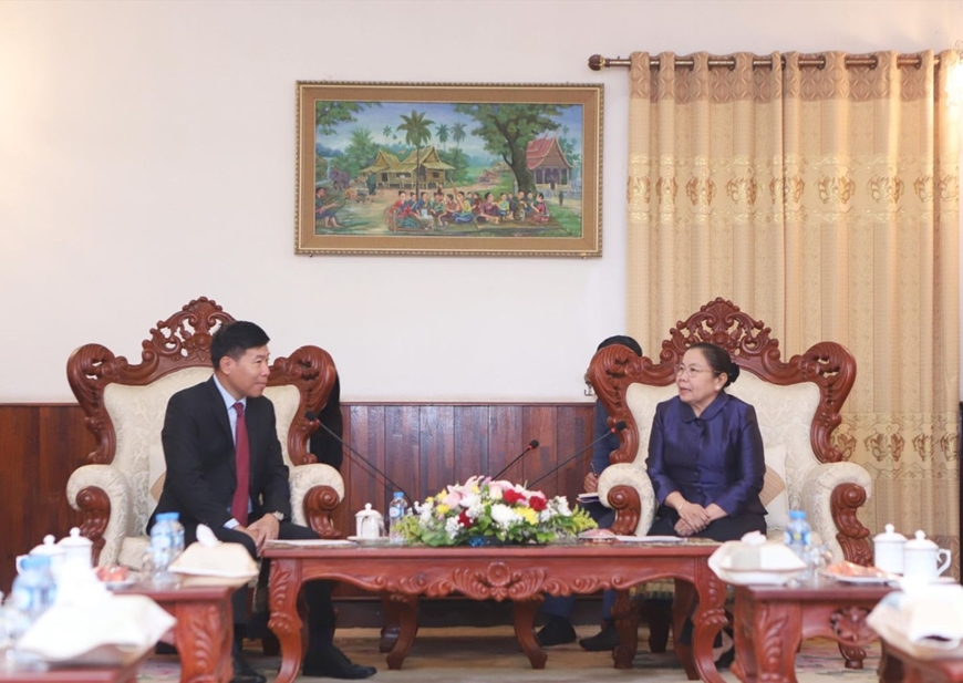 Thứ trưởng Bộ Ngoại giao Nguyễn Mạnh Cường gặp đồng chí Sisay Leudetmounsone.
