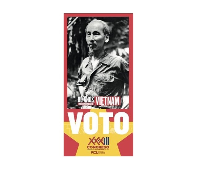 | Hình ảnh Chủ tịch Hồ Chí Minh trong phiếu bầu Đại hội Đảng Cộng sản Uruguay lần thứ 33, với dòng chữ "80 năm Quốc khánh Việt Nam. Đại hội Đảng Cộng sản Uruguay (PCU) lần thứ 33". |