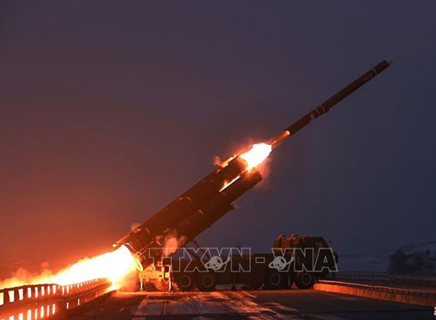 | Một vụ phóng thử tên lửa hành trình chiến lược tầm xa của Triều Tiên. Ảnh: Yonhap/TTXVN |