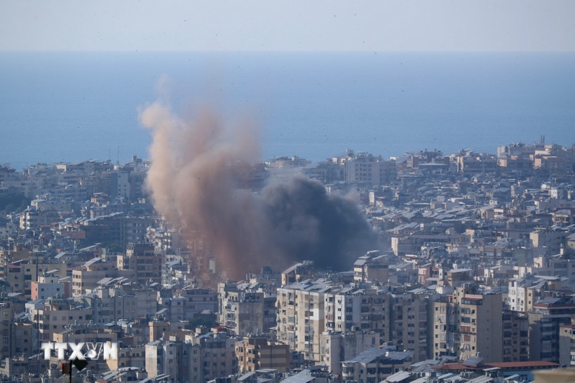Khói bốc lên từ địa điểm ở ngoại ô Beirut, Lebanon sau cuộc không kích của Israel.