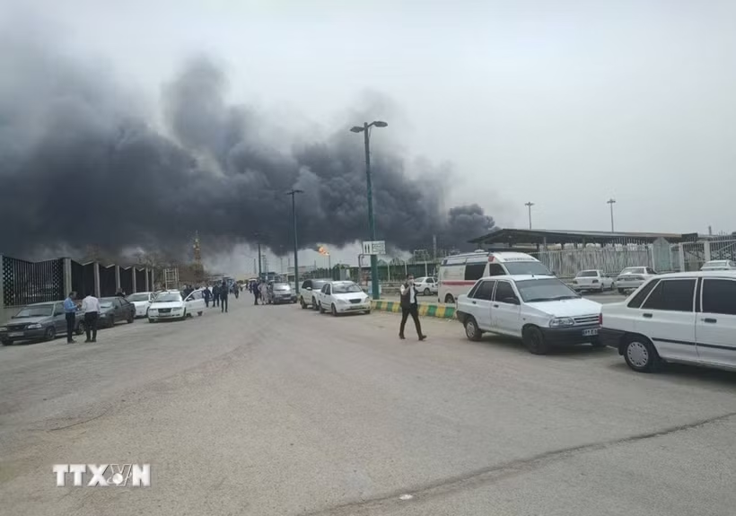 Khói bốc lên tại hiện trường vụ nổ Trung tâm hóa dầu Mahshahr ở Ahvaz, thủ phủ tỉnh Khuzestan, Iran.