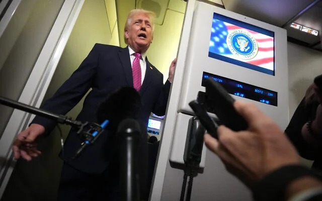 Tổng thống Donald Trump phát biểu trước các phóng viên trên chuyên cơ Air Force One trên đường từ West Palm Beach, Florida đến Căn cứ Liên hợp Andrews, Maryland, ngày 29-3. Ảnh minh họa: Ảnh: AP
