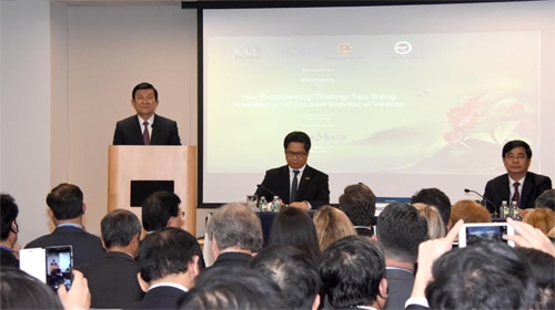 Chủ tịch nước Trương Tấn Sang dự tọa đàm doanh nghiệp Việt Nam - Hoa Kỳ về tác động của Hiệp định Đối tác xuyên Thái Bình Dương (TPP) đối với doanh nghiệp hai nước.