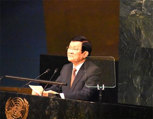 Chiều 25-9, trong phiên họp toàn thể ngày đầu tiên của Hội nghị Thượng đỉnh, Chủ tịch nước Trương Tấn Sang đã có bài phát biểu trước hội nghị.