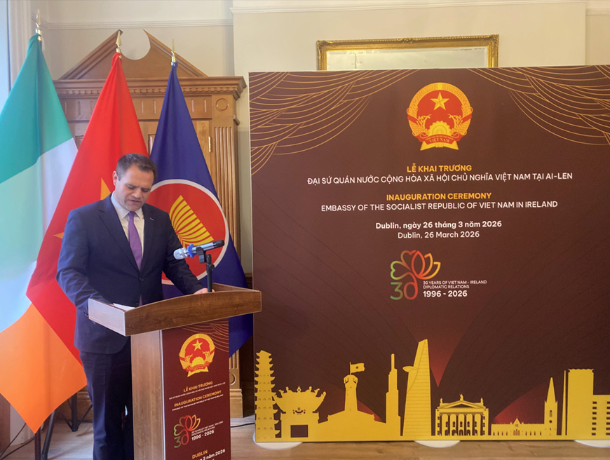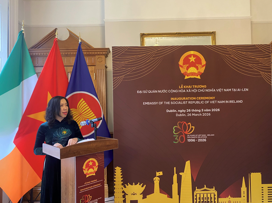 Phát biểu tại buổi lễ, Thứ trưởng Ngoại giao Lê Thị Thu Hằng nhấn mạnh, Lễ khai trương Đại sứ quán Việt Nam tại Ireland là một cột mốc quan trọng, diễn ra đúng trong năm hai nước kỷ niệm 30 năm thiết lập quan hệ ngoại giao (1996 - 2026). Sự kiện này còn mở ra một chương mới trong quan hệ Việt Nam - Ireland, đồng thời khẳng định cam kết mạnh mẽ của Việt Nam trong việc thúc đẩy hợp tác toàn diện với Ireland, từ chính trị, thương mại, giáo dục, khoa học - công nghệ đến văn hóa và giao lưu nhân dân.