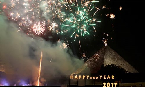 Kim tự tháp ở Ai Cập trong thời khắc năm mới.
