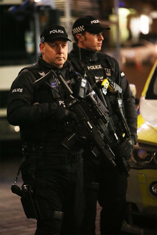 Trước nguy cơ khủng bố, thời khắc đón năm mới 2017, an ninh được thắt chặt tại nhiều quốc gia. Ảnh: Cảnh sát Anh tuần tra tại London.