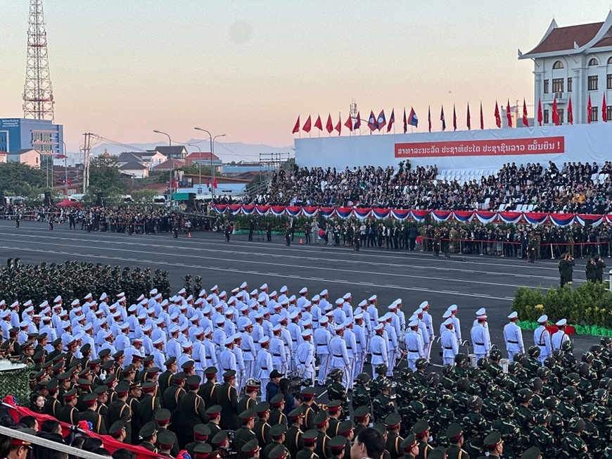 Lễ kỷ niệm, diễu binh, diễu hành chào mừng 50 năm Quốc khánh nước Cộng hòa Dân chủ Nhân dân Lào (2-12-1975 /2- 12-2025) và kỷ niệm 105 năm Ngày sinh Chủ tịch Kaysone Phomvihane chính thức diễn ra vào sáng 2-12, tại Quảng trường ThatLuang, thủ đô Vientiane. Đây là lần diễu binh, diễu hành lớn, đánh dấu cột mốc 50 năm lịch sử rực rỡ, vẻ vang của nhân dân các dân tộc Lào.