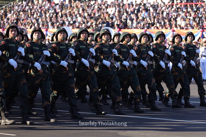 Cuộc diễu binh, diễu hành quy tụ màn trình diễn sức mạnh của lực lượng quốc phòng, an ninh, các bộ, ngành và sự đa dạng văn hóa của các dân tộc Lào. Chương trình còn bao gồm màn trình diễn trên không của trực thăng và máy bay chiến đấu, không chỉ tạo nên khung cảnh trang nghiêm, hùng tráng mà còn khơi dậy niềm tự hào sâu sắc của nhân dân các dân tộc Lào trong suốt 50 năm qua.
