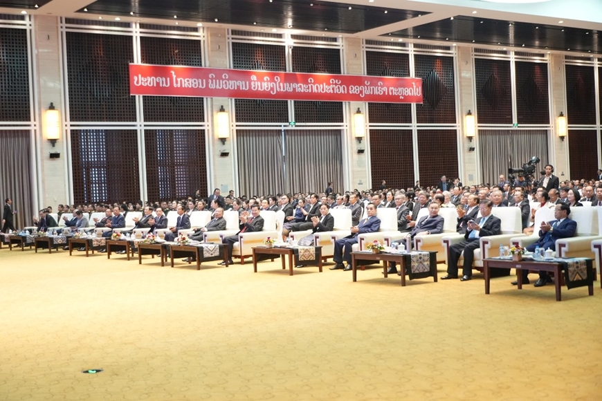 Buổi lễ diễn ra trong không khí trang nghiêm và xúc động với sự tham dự của Tổng Bí thư, Chủ tịch nước Lào Thongloun Sisoulith; Thủ tướng Lào Sonexay Siphandone; Chủ tịch Quốc hội Lào Saysomphone Phomvihane, cùng đông đảo lãnh đạo và nguyên lãnh đạo Đảng, Nhà nước, Chính phủ, đại diện các bộ, ban, ngành, Mặt trận và các đoàn thể nhân dân Lào.