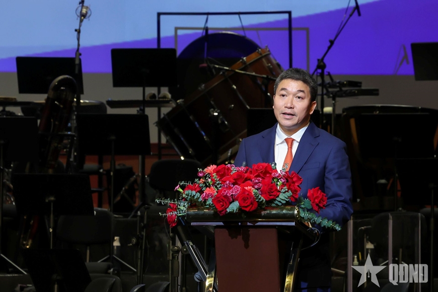 Chủ tịch Liên hiệp các tổ chức hữu nghị Việt Nam Phan Anh phát biểu tại lễ kỷ niệm. |