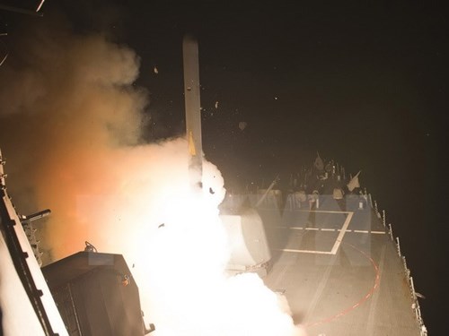 Theo đó, quân đội Mỹ đã bắn từ 50-70 quả tên lửa hành trình Tomahawk nhằm vào một căn cứ không quân của Syria để đáp trả vụ tấn công hoá học khiến hàng chục dân thường thiệt mạng tại quốc gia Trung Đông này. Đây là vụ tấn công trực tiếp của Mỹ nhằm vào các lực lượng của Tổng thống Syria Bashar al- Assad kể từ khi cuộc nội chiến bùng phát 6 năm trước. Sự kiện này đánh dấu một bước leo thang quân sự lớn của Mỹ và có nguy cơ gây đối đầu trực tiếp vơi Nga và Iran.