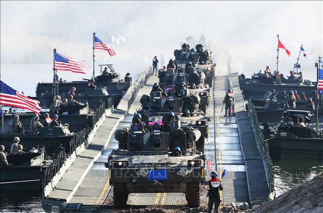 Binh sĩ Mỹ và Hàn Quốc tham gia cuộc tập trận chung ở Yeoju, Hàn Quốc, ngày 20-10-2023. Ảnh (tư liệu) minh họa