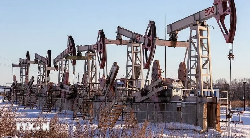 | Hoạt động bơm dầu tại giếng dầu Gremikhinskoye ở Izhevsk, vùng Ural, Liên bang Nga. Ảnh: TTXVN |