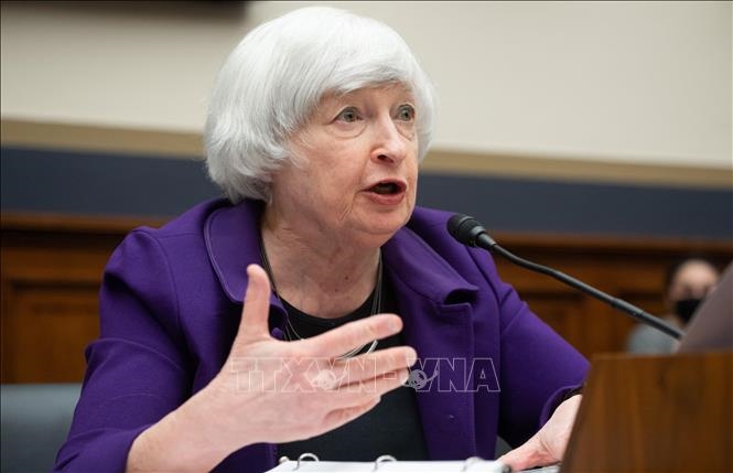 | Bộ trưởng Tài chính Mỹ Janet Yellen phát biểu trong phiên điều trần ở Washington, DC ngày 6/4/2022. Ảnh: AFP/TTXVN |