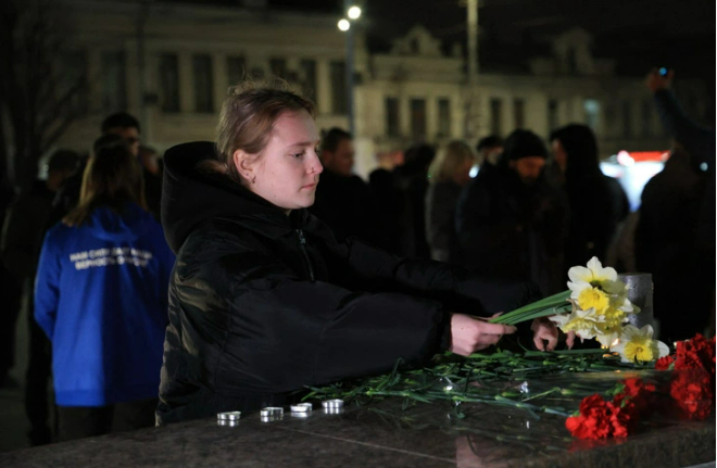 | Người dân đặt hoa tại Crimea tưởng niệm nạn nhân của vụ tấn công khủng bố ở Moscow, Nga, ngày 22-3 - Ảnh: AFP |