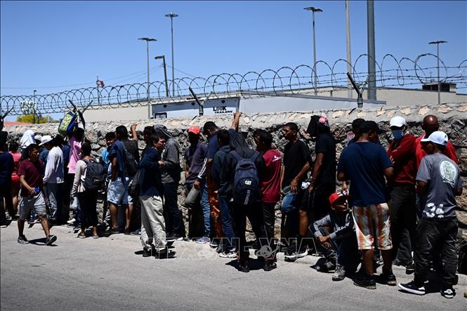 Người di cư chờ xét duyệt bên ngoài Cơ quan kiểm soát biên phòng Mỹ.